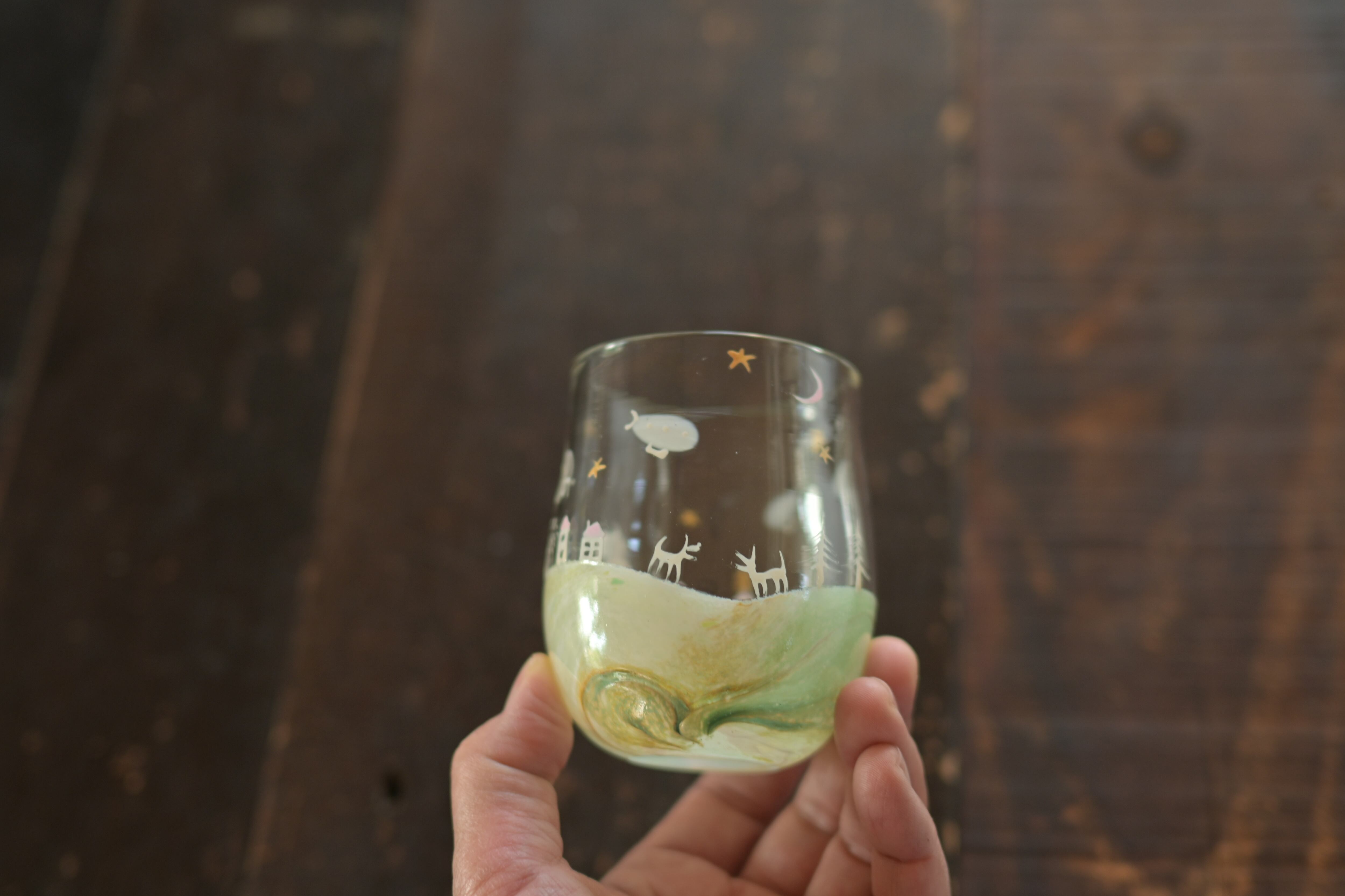 家や動物や木や月などの絵付け部分は、焼き付けていますが、硬いもので削ると剥がれることがあります。