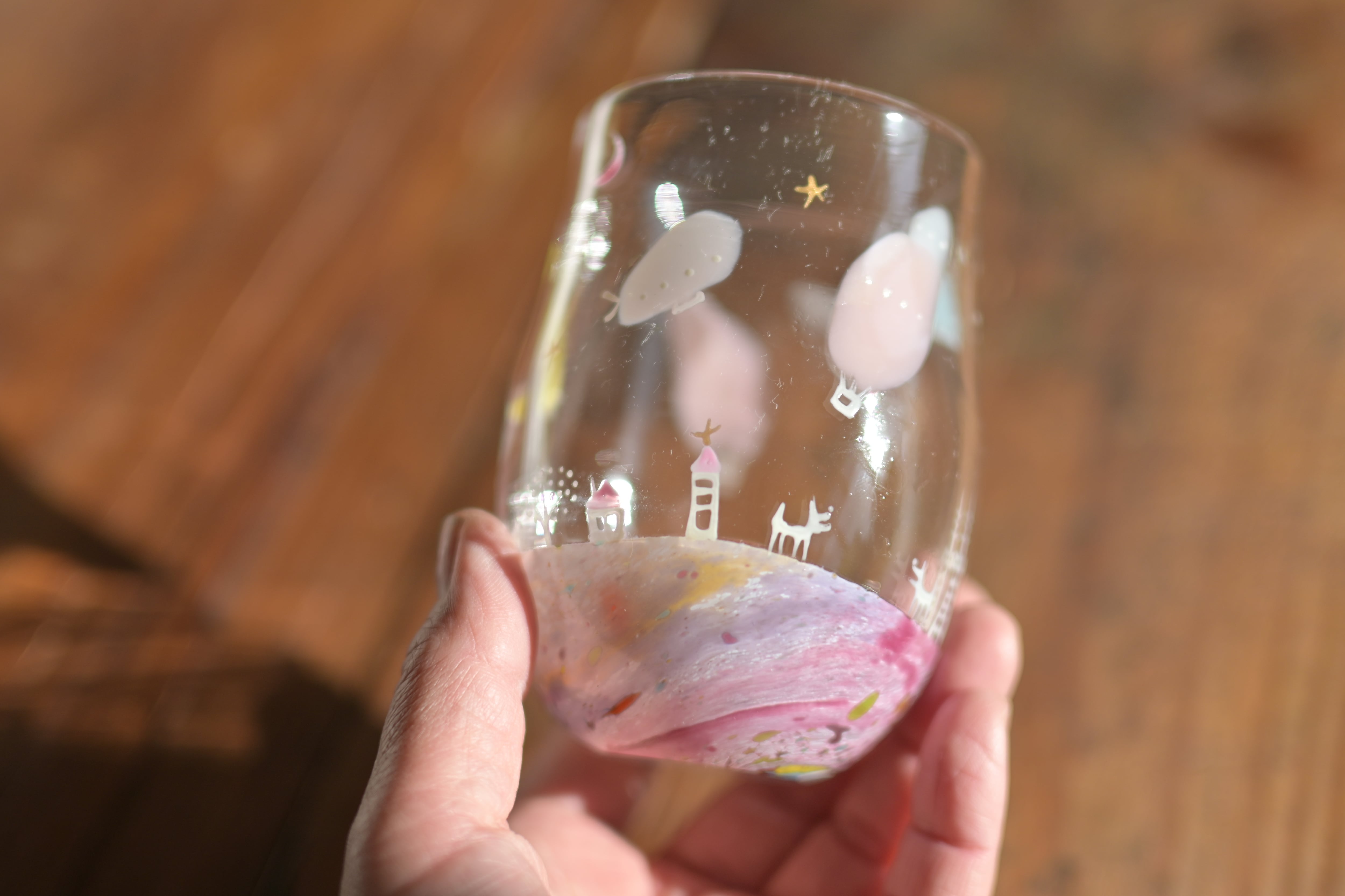 家や動物や木や月などの絵付け部分は、焼き付けていますが、硬いもので削ると剥がれることがあります。